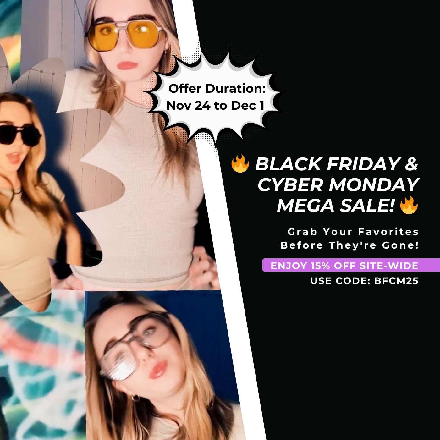 Step into the future of festival fashion! Our switchable diffraction eyewear redefine how you see the lights